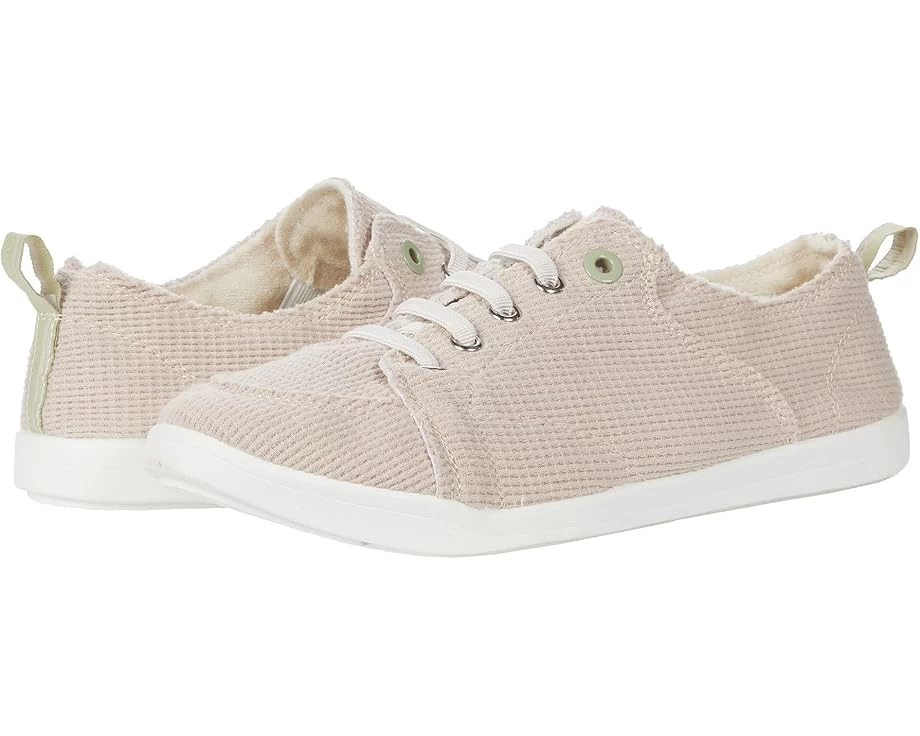 Tie-into summer with the VIONIC® Beach Pismo shoes. Vegan-friendly casual sneakers with stretch laces, metal eyelets, and canvas uppers that come in print or solid colors.SKU: #9851981Part of the VIONIC® Beach Collection.Slip-on sneakers with a breathable canvas upper that provides all-day comfort.Frayed detail along the collar with a heel pull tab for easy on and off.Flat laces from a stretchy cotton allows shoes to easily be slipped on and off.Removable twill-covered EVA footbed provides cushioned comfort.TPR (thermo-plastic rubber) outsole delivers grippy traction and support.Imported.Product measurements were taken using size 8.5, width M. Please note that measurements may vary by size.Weight of footwear is based on a single item, not a pair.Measurements: