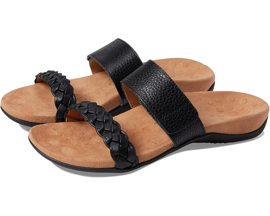 A great pick for everyday wear, the VIONIC® Jeanne Sandals offer a perfect amalgamation of comfort and luxury.SKU: #9846731Leather and synthetic upper.This shoe has received the American Podiatric Medical Association (APMA) Seal of Acceptance for promoting good foot health.Synthetic and textile lining.Contoured padded microfiber-covered footbed for all-day comfort.VIONIC® biomechanical technology combines the podiatrist-designed orthotic with a flexible and cushioned outsole for all-day support during work, play, and everyday. VIONIC® sandals’ built-in orthotic is shown to be effective in helping to treat heel pain (plantar fasciitis).Slip-on construction with a hook-and-loop strap closure.Open round toe.Durable synthetic outsole.Imported.Product measurements were taken using size 9, width M. Please note that measurements may vary by size.Weight of footwear is based on a single item, not a pair.Measurements: