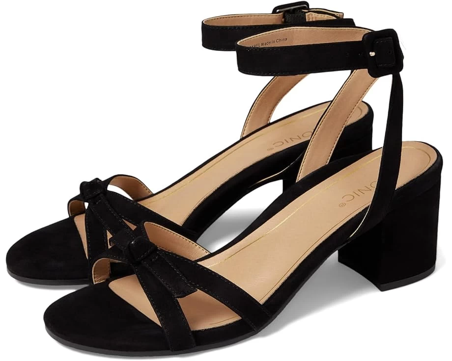 Elegant and classy, the VIONIC® Rosabel Heels offer style and comfort in a very subtle manner and make an excellent option for both office and party wear.SKU: #9847005Leather upper with a bow embellishment on the vamp straps.Leather and synthetic lining.Lightly padded leather footbed.VIONIC® biomechanical technology combines the podiatrist-designed orthotic with a flexible and cushioned outsole for all-day support during work, play, and everyday. VIONIC® sandals’ built-in orthotic is shown to be effective in helping to treat heel pain (plantar fasciitis).Adjustable buckle closure on the ankle strap.Open round toe.Block heel.Durable synthetic outsole.Imported.Product measurements were taken using size 9, width M. Please note that measurements may vary by size.Measurements: