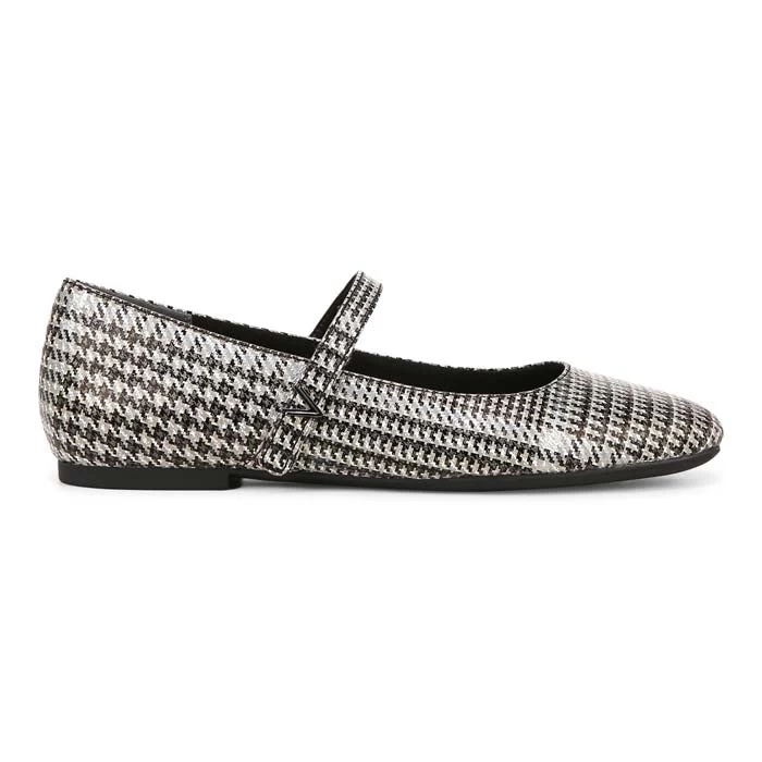 This mary jane flat features a hook and loop closure embellished with the signature Vionic logo.