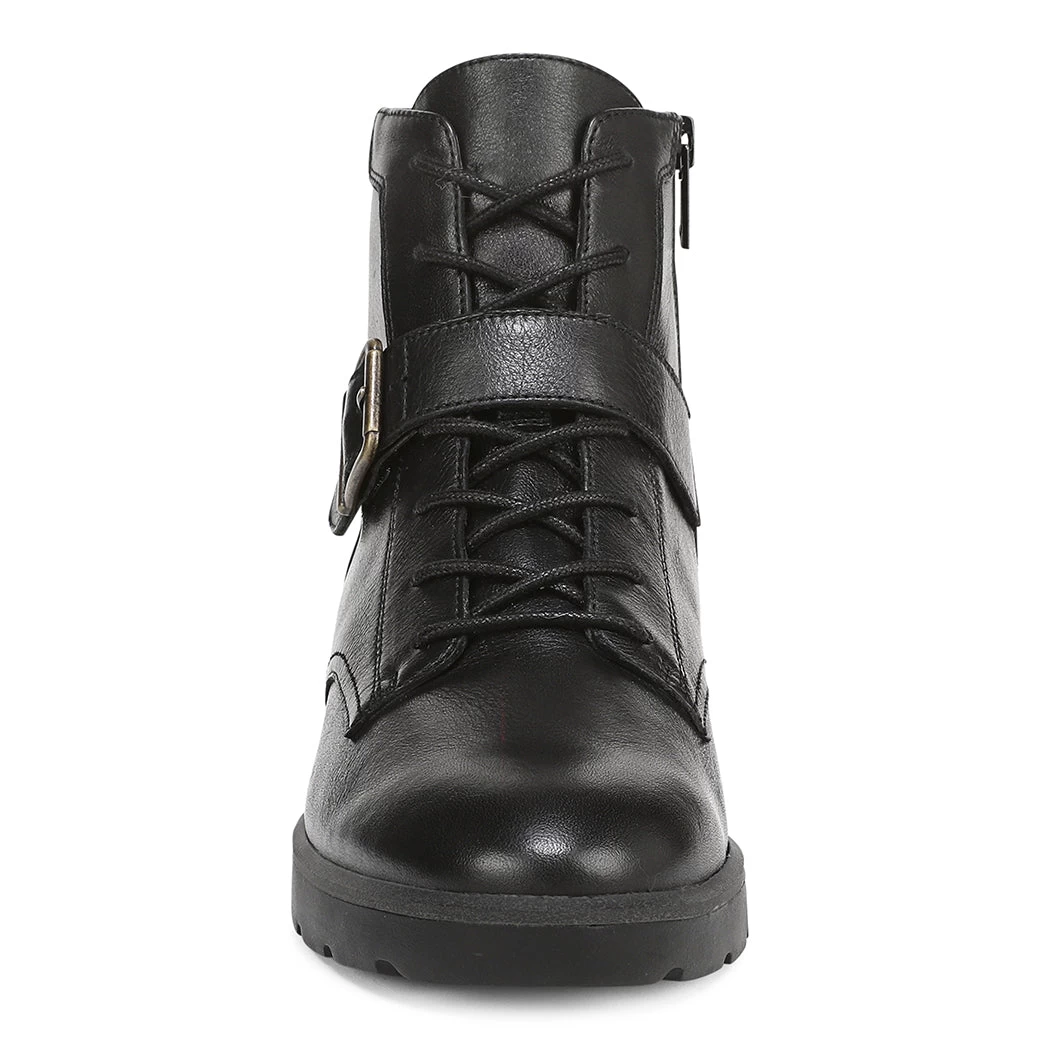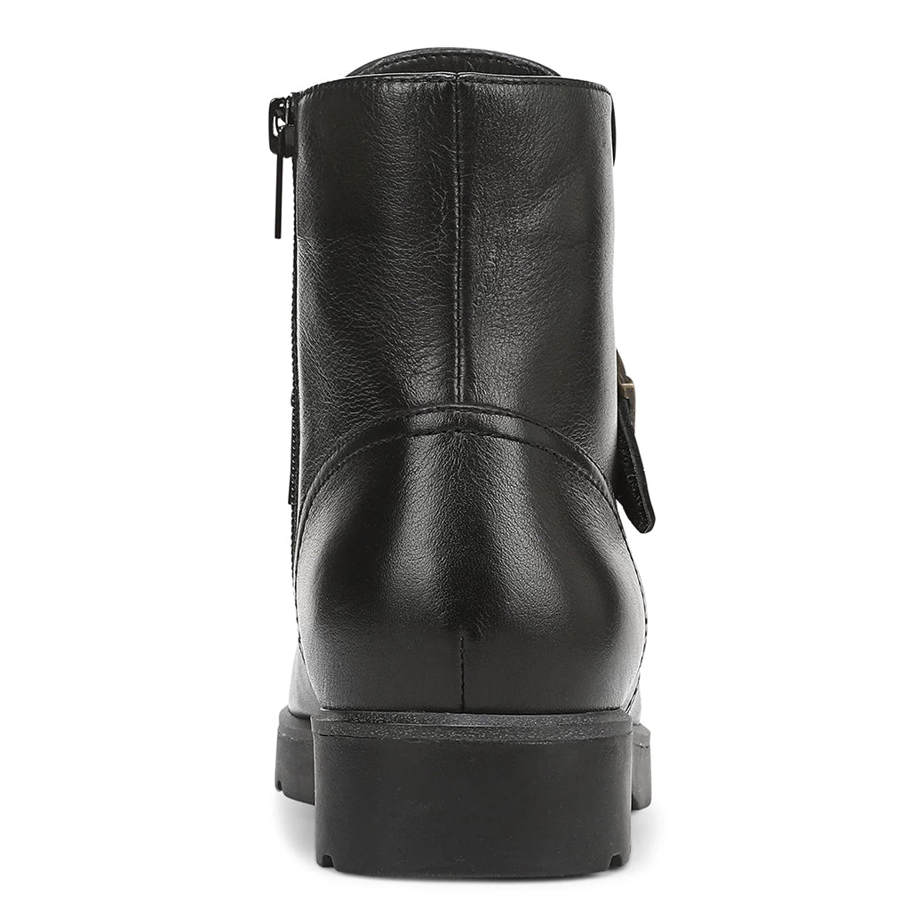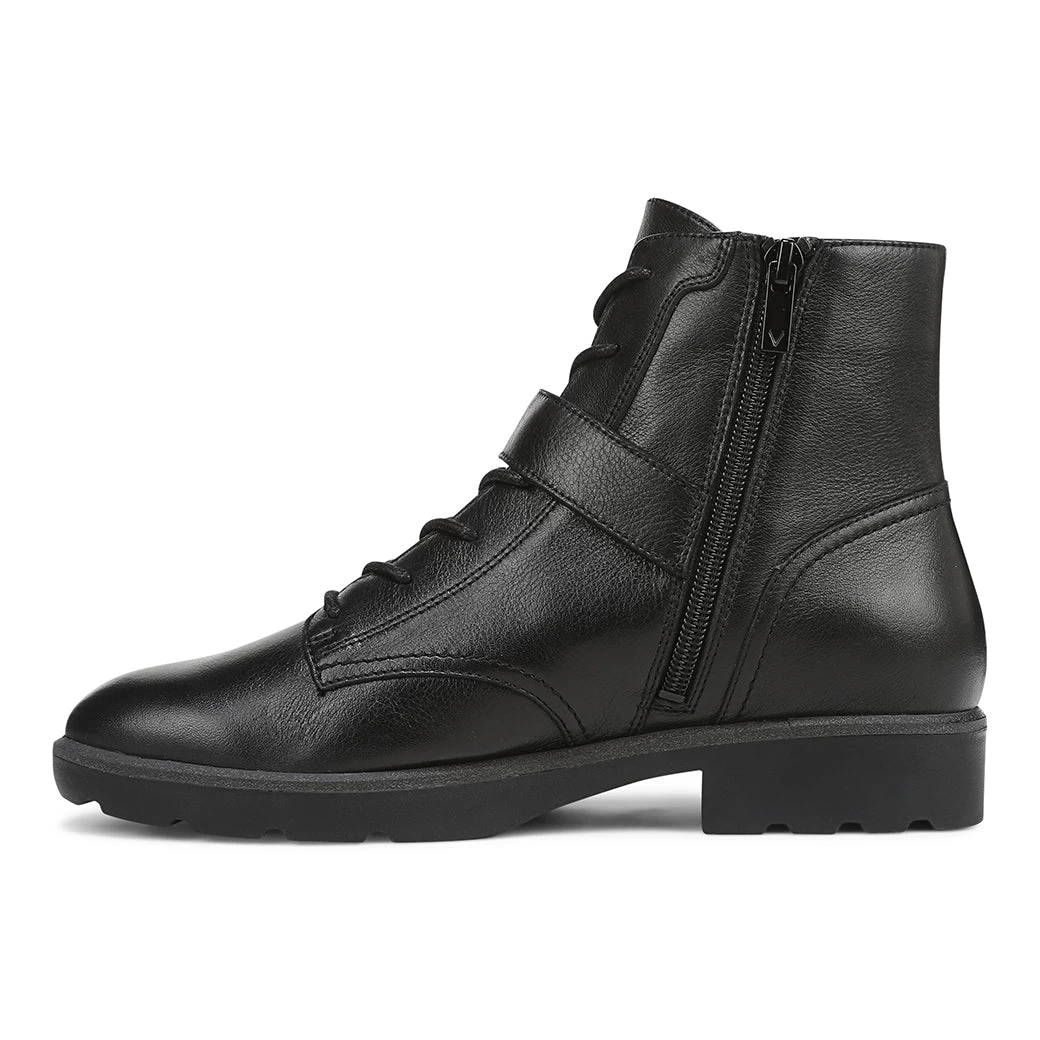 The Catina boots feature a stylish lace-up closure with a decorative buckle on top, adding a touch of flair to the design. With Vionics signature support, these boots deliver both fashion and comfort for all-day wear.
