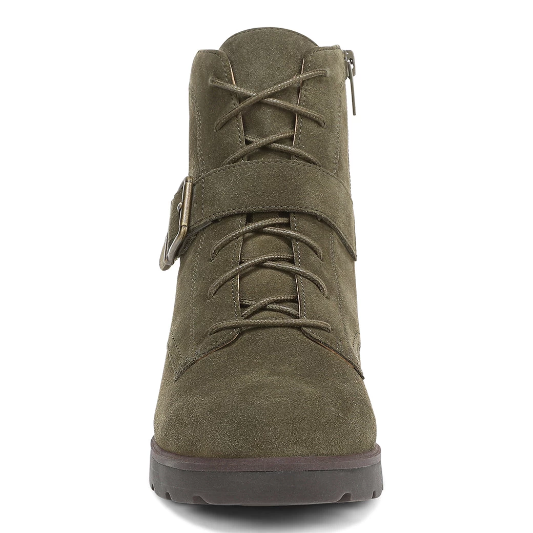 The Catina boots feature a stylish lace-up closure with a decorative buckle on top, adding a touch of flair to the design. With Vionics signature support, these boots deliver both fashion and comfort for all-day wear.