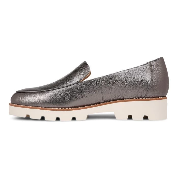 Shiny finish for a dressy look in an incredibly lightweight slip-on platform loafer that’s perfect for traveling.