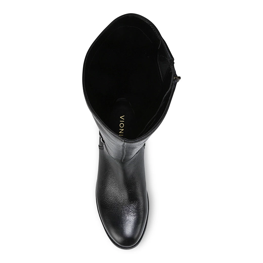 The Rochelle boot features a sleek leather upper and a convenient zipper closure for easy wear with a stylish design and Vionics signature support.