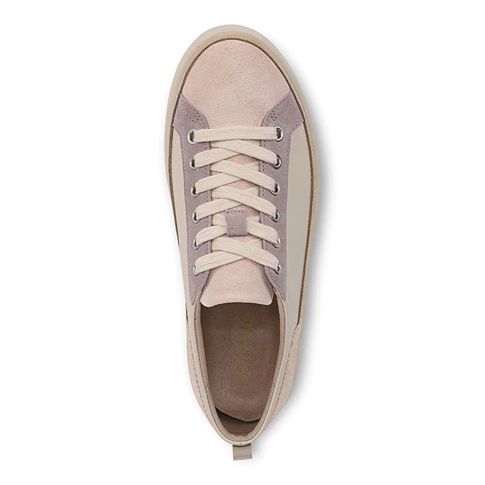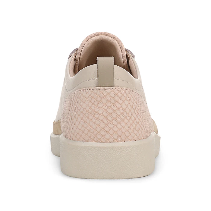 A traditional leather, lace-up, rubber-sole sneaker with unique details.