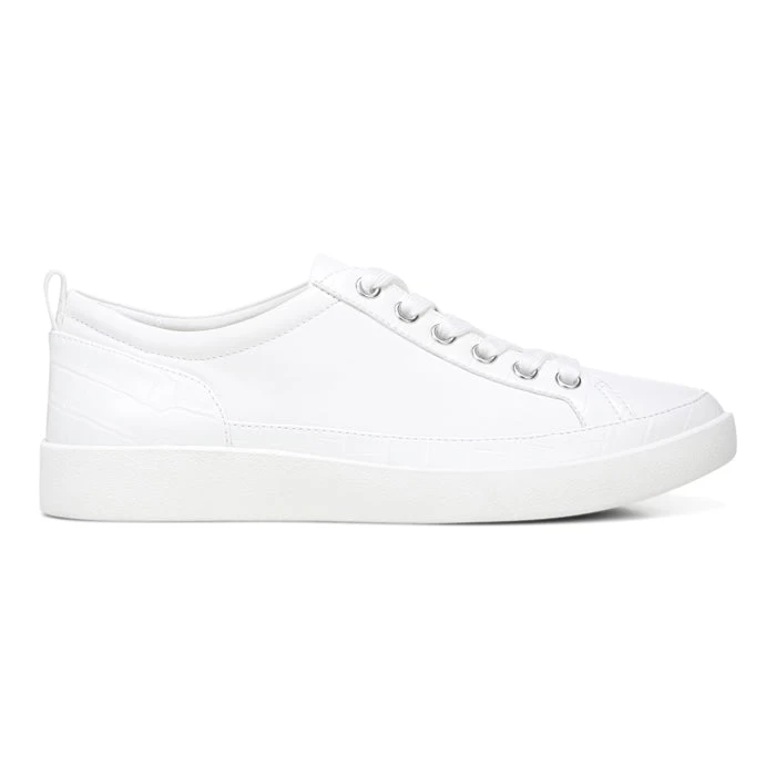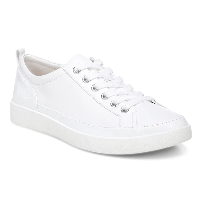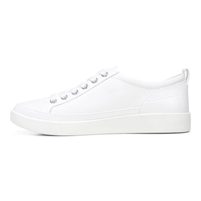 A traditional leather, lace-up, rubber-sole sneaker with unique details.